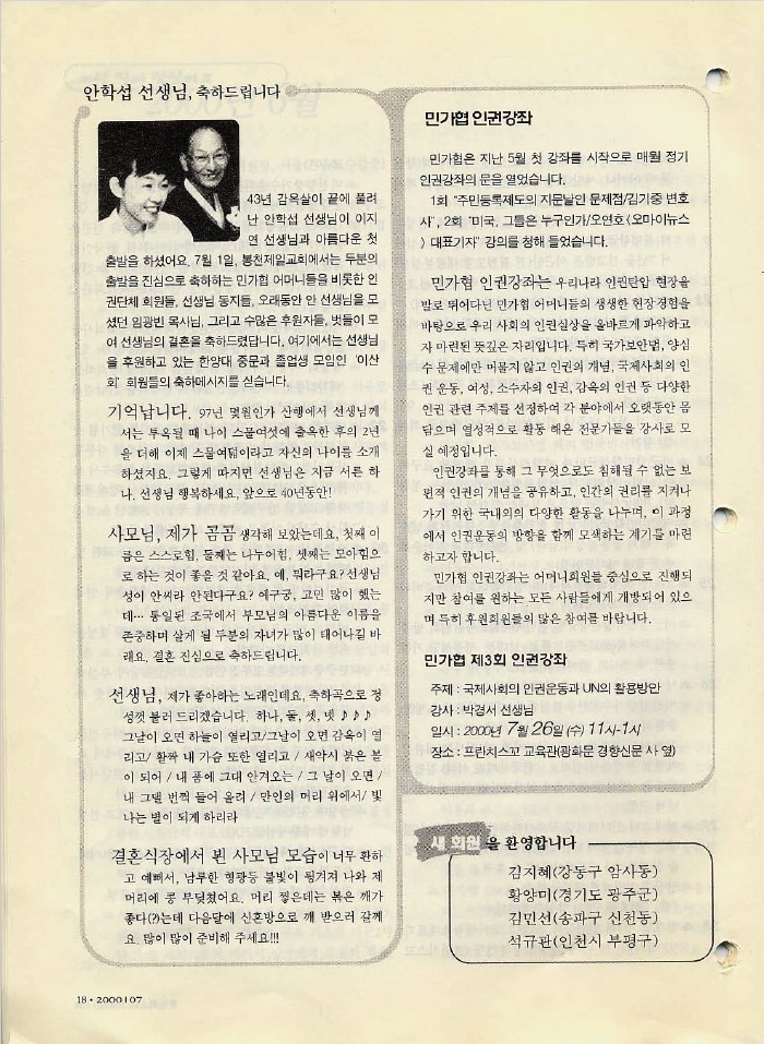 [소식지] 안학섭-혼인식: 안학섭 선생님, 축하드립니다-105호