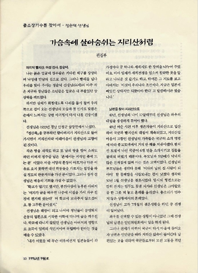 [소식지] 정순덕-가슴속에 살아숨쉬는 지리산처럼-59호