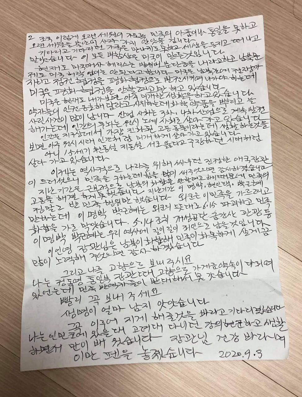 #통일부장관편지