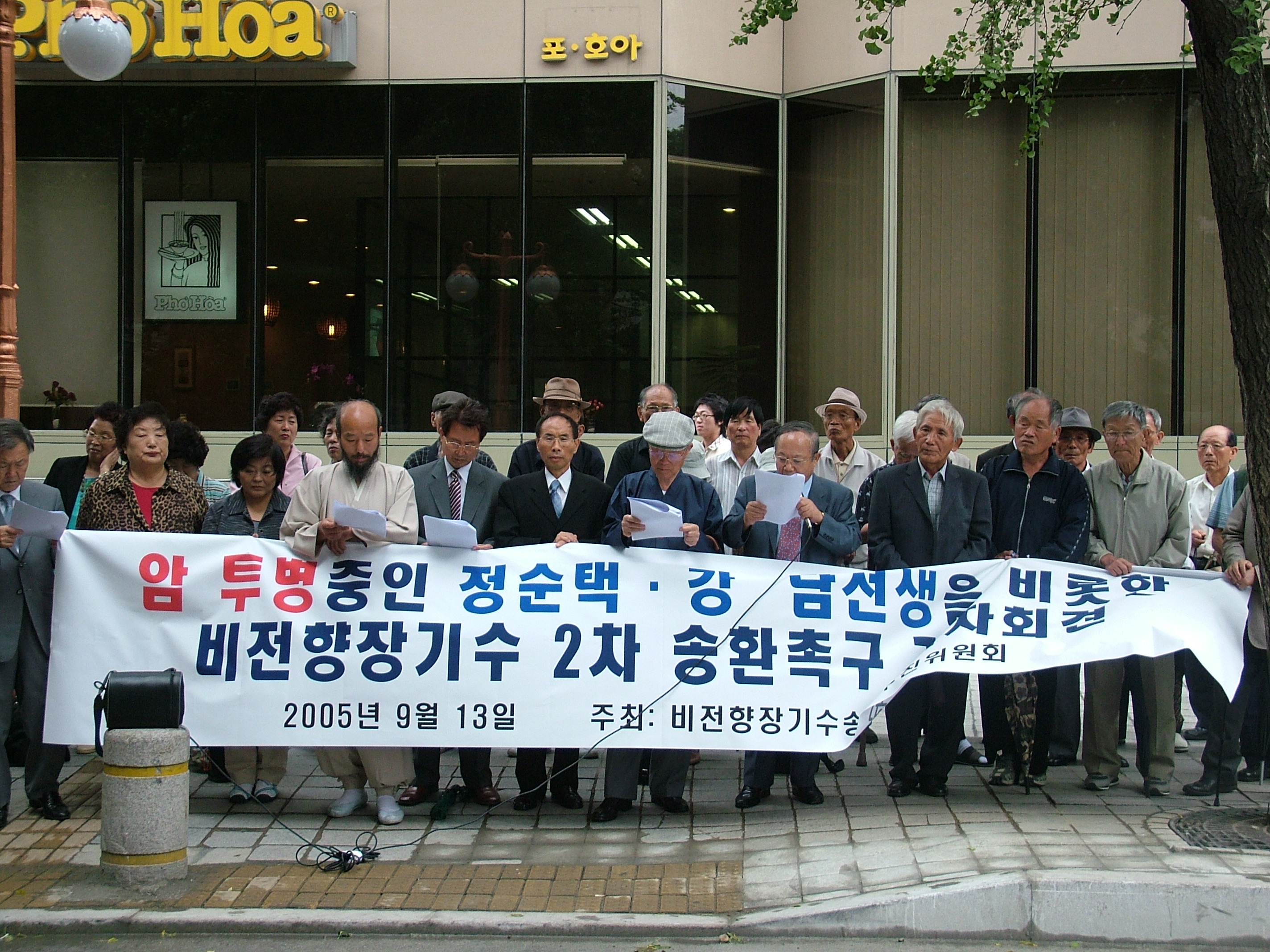 암투병중인 정순택, 강담 선생을 비롯한 비전향장기수 2차송환 촉구 기자회견-20050913통일부앞-통일뉴스 제공