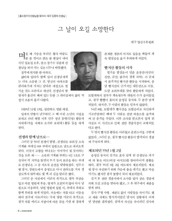 [소식지] 김종하- 대구양심수후원회 소식지에서 가져온 글