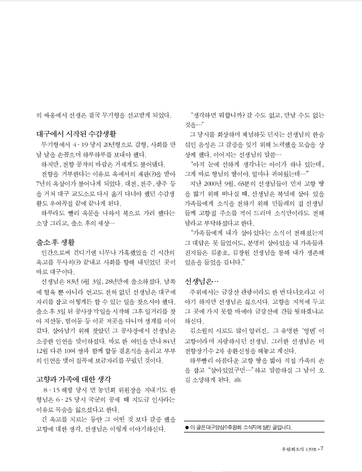 [최초 출처] 대구양심수후원회 소식지
