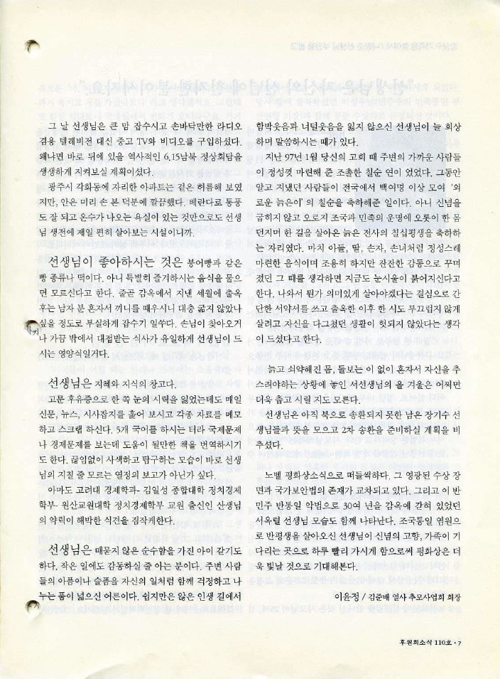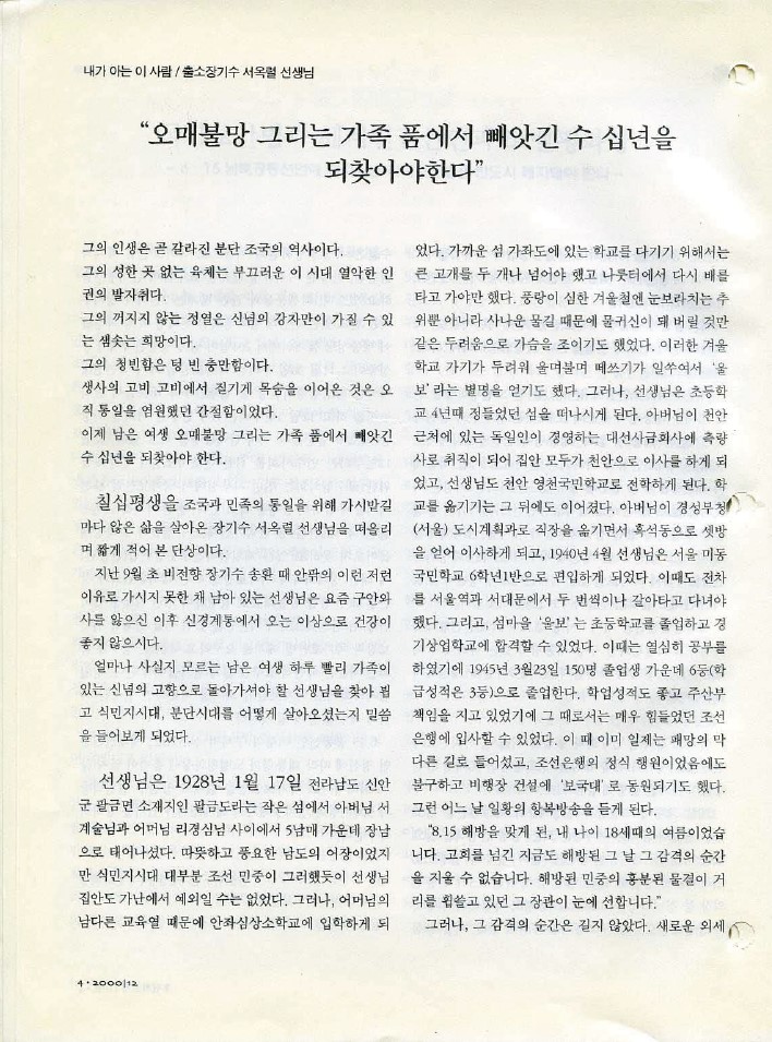 [소식지] 서옥렬-오매불망 그리는 가족품에서 빼앗긴 수십 년을 되찾아야한다-110호