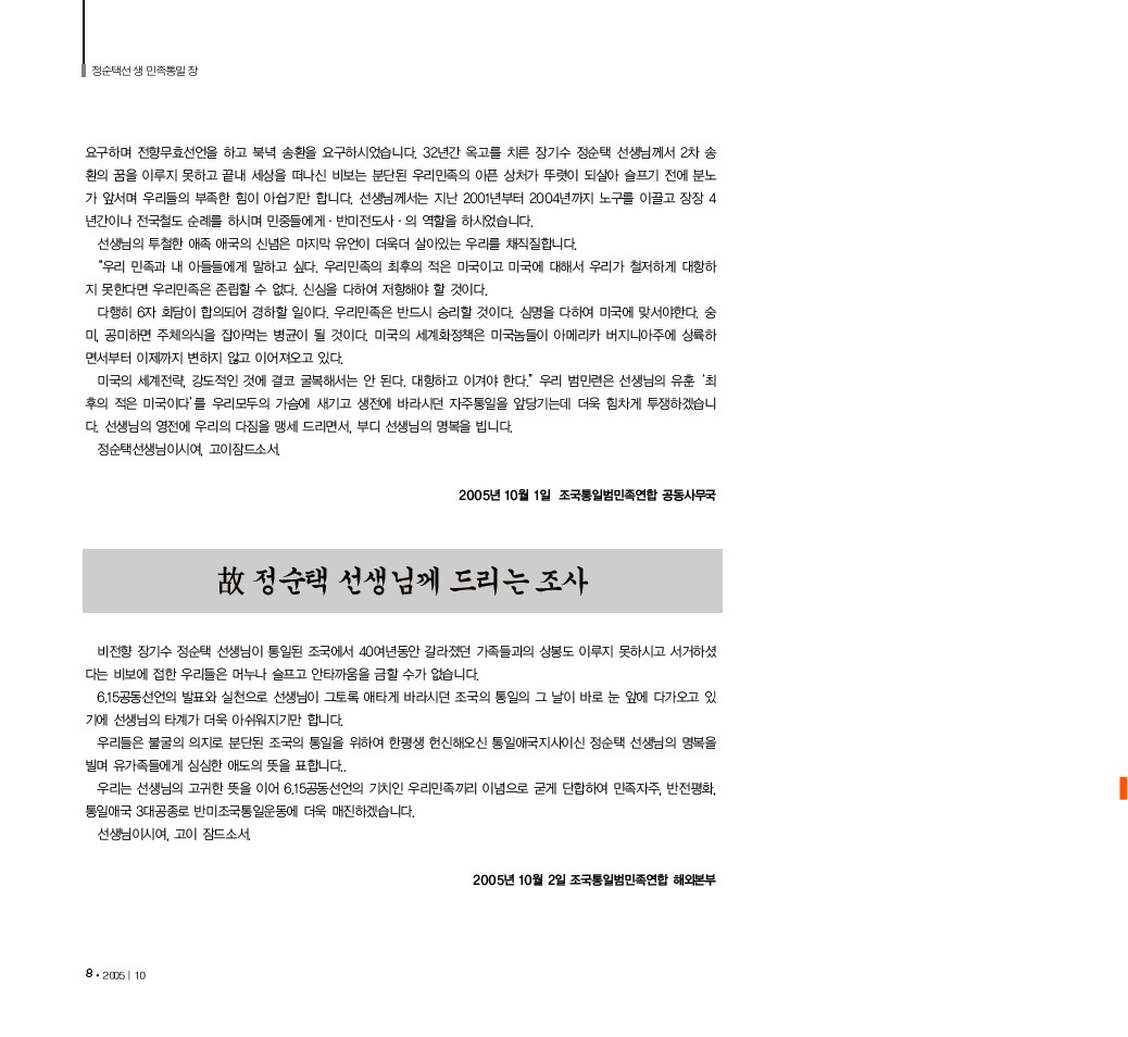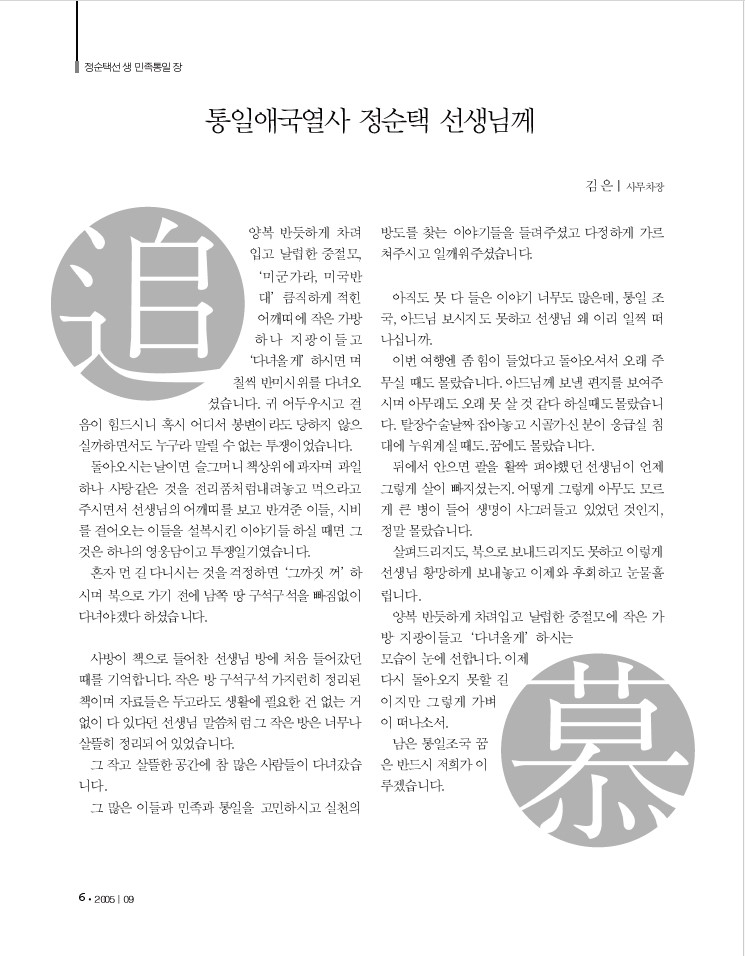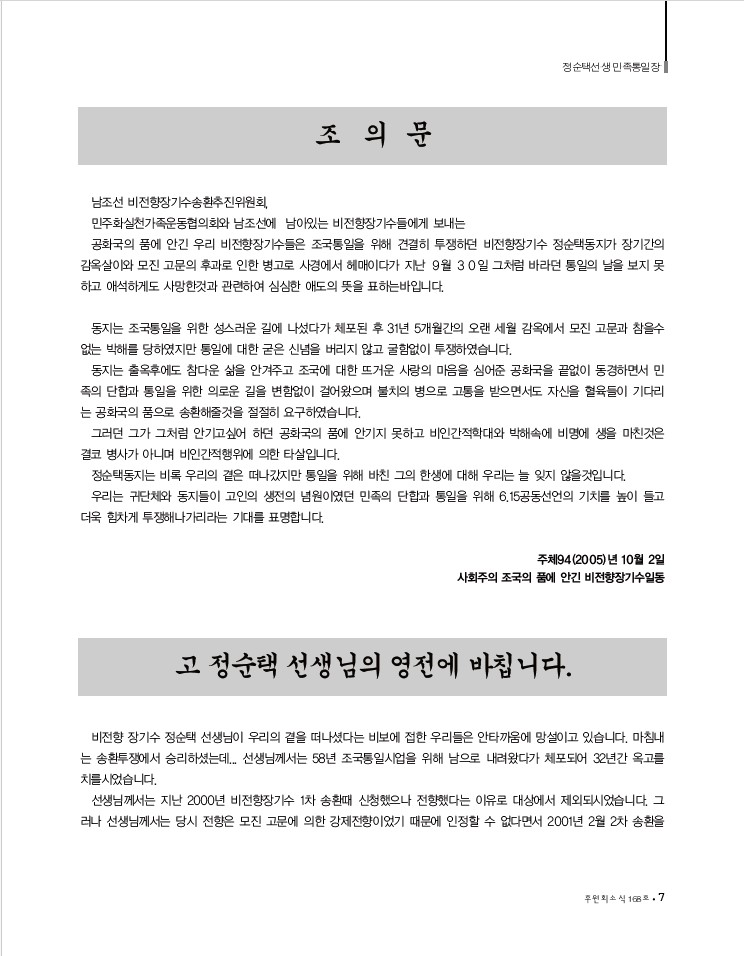 [소식지] 정순택-정순택선생 민족통일장-168호
